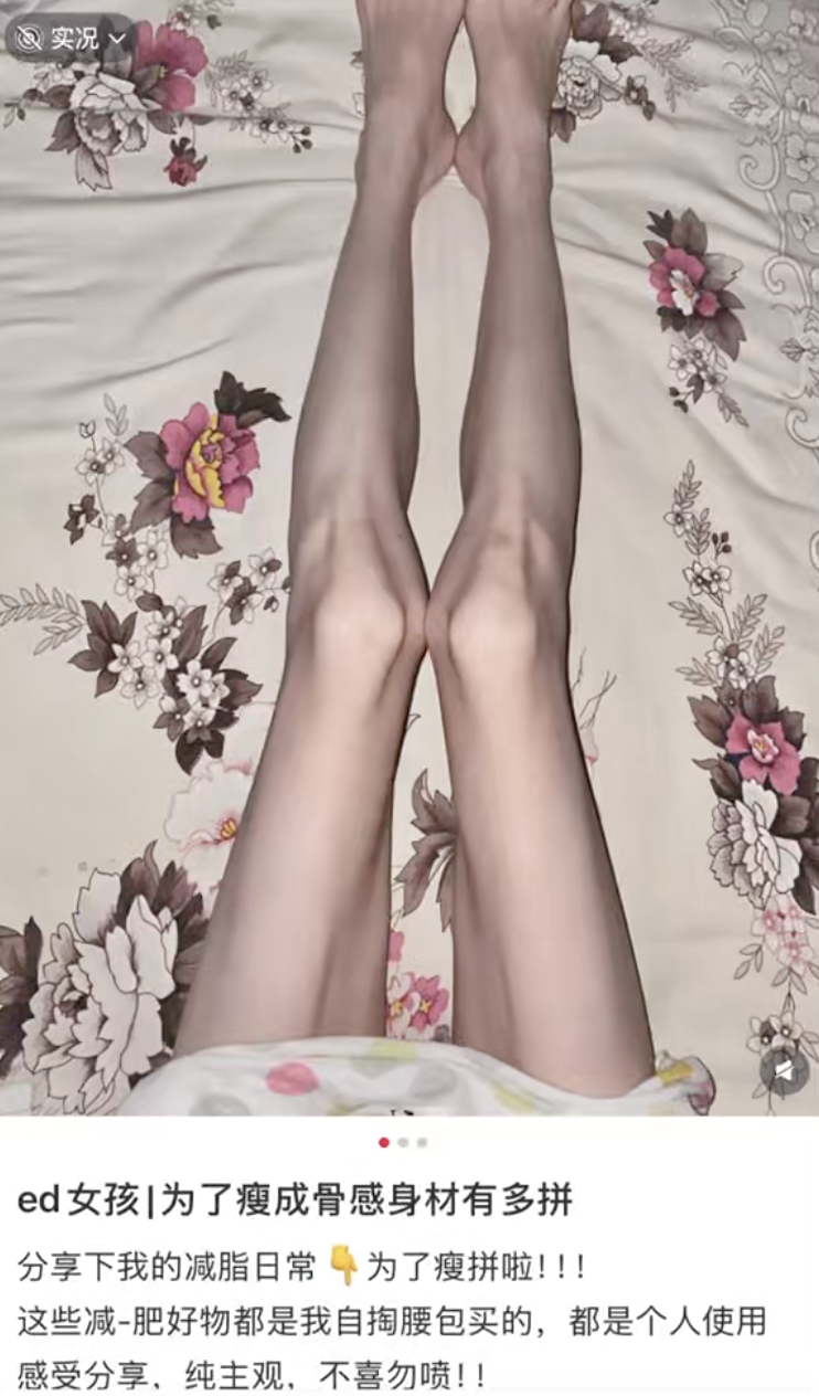 “她对自我的认可来自身边人的目光,或是媒体的标准。如果网络上展现的女生形象都是铅笔腿,她就可能认为这是最美的,自己也要这样。”